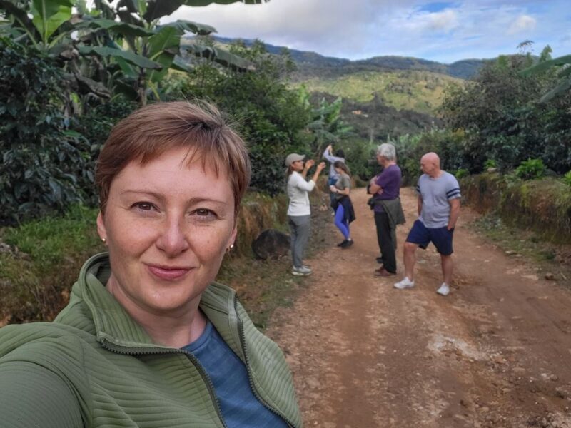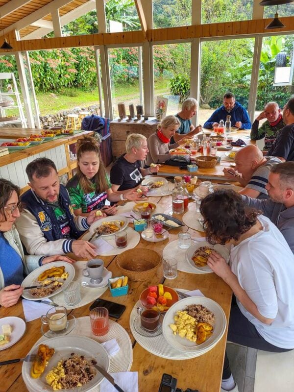 Time to ride! This was our warm-up day: nothing too technical, though the mountain roads were crazy steep and full of sharp turns. The bikes handled it like champs. Our destination? A charming, 120-year-old coffee farm nestled in the hills.