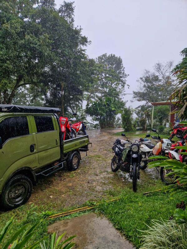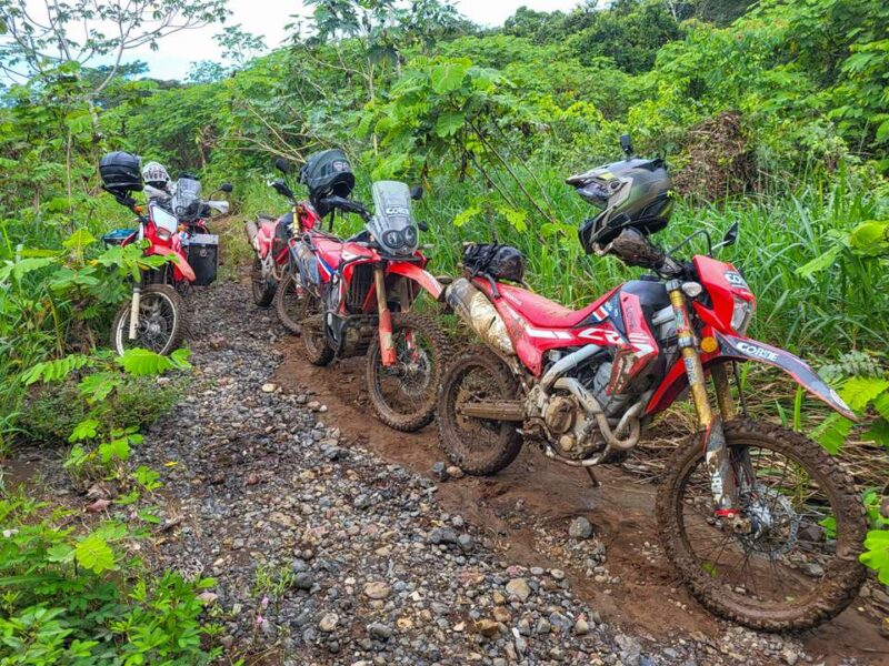 We started the day in the rain, climbing through muddy, twisty mountain tracks. By afternoon, we were sweating under the Pacific sun.