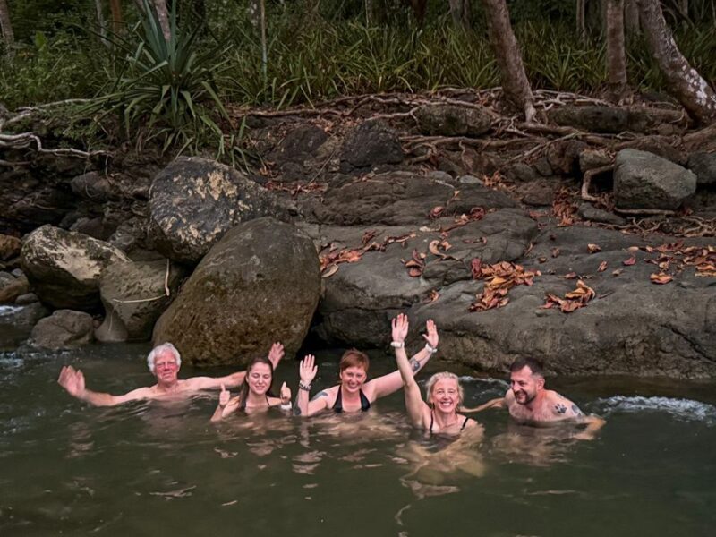 What Actually Happened: Wake-up call at 5:30. Breakfast before 7. On the road by 7:45. Scenic ocean road and yes, crocs under the bridge! Made the ferry on time. River crossings that were way tougher than we thought. Got to see baby sea turtles being released – magical! Walk on the beach, refreshing swim, and a killer dinner.