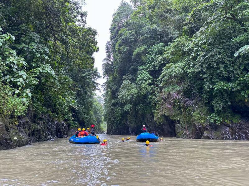 Another day, another downpour (with a small break during the breakfast, when the Arenal Volcano showed up from the clouds!). But the trails were still fun, even if we got lost once or twice. Toward the end of the ride, we reached a river that locals said wasn’t passable. Luckily, we were already on the right side. We poked around the riverbank just for fun – because why not?